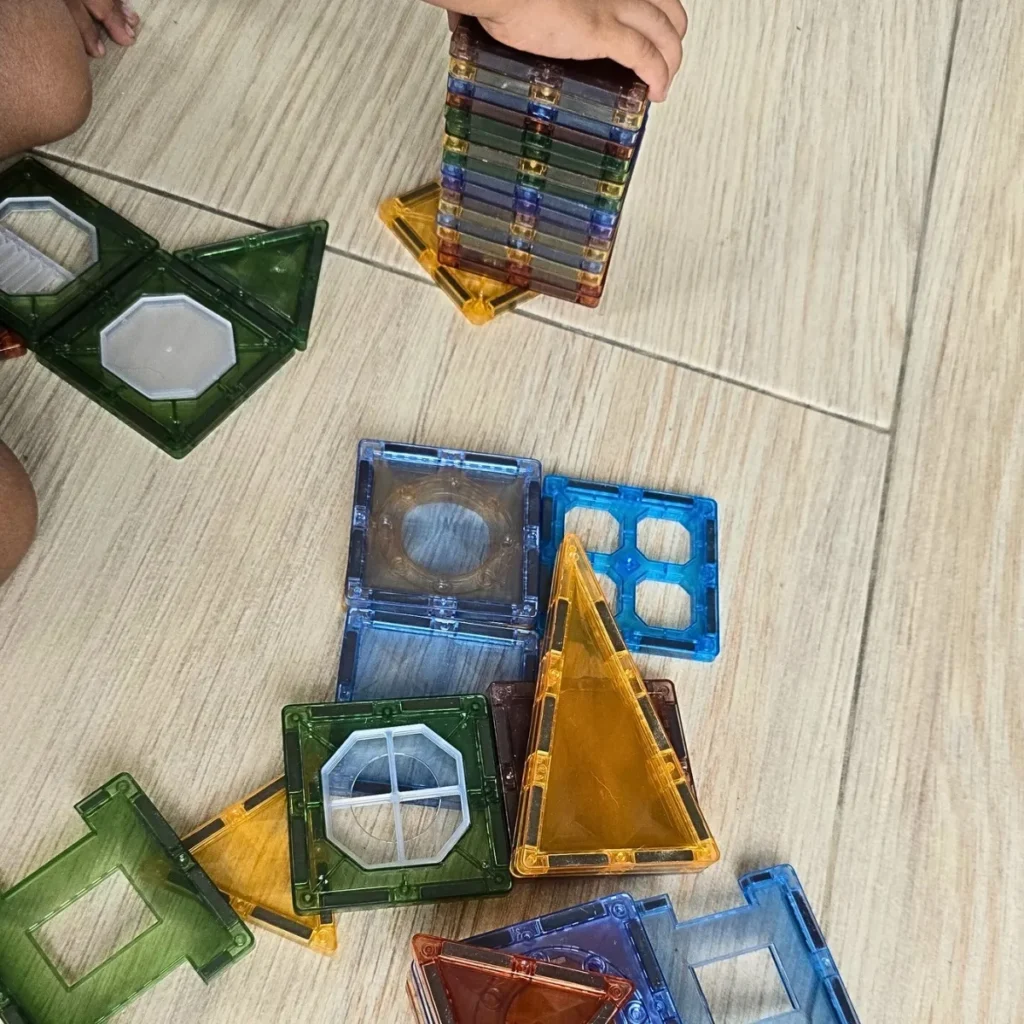 A esta edad, las fichas estimulan la Creatividad y mejoran la Coordinación Motriz, permitiendo crear formas y estructuras simples con piezas fáciles de manejar y fuertes imanes .