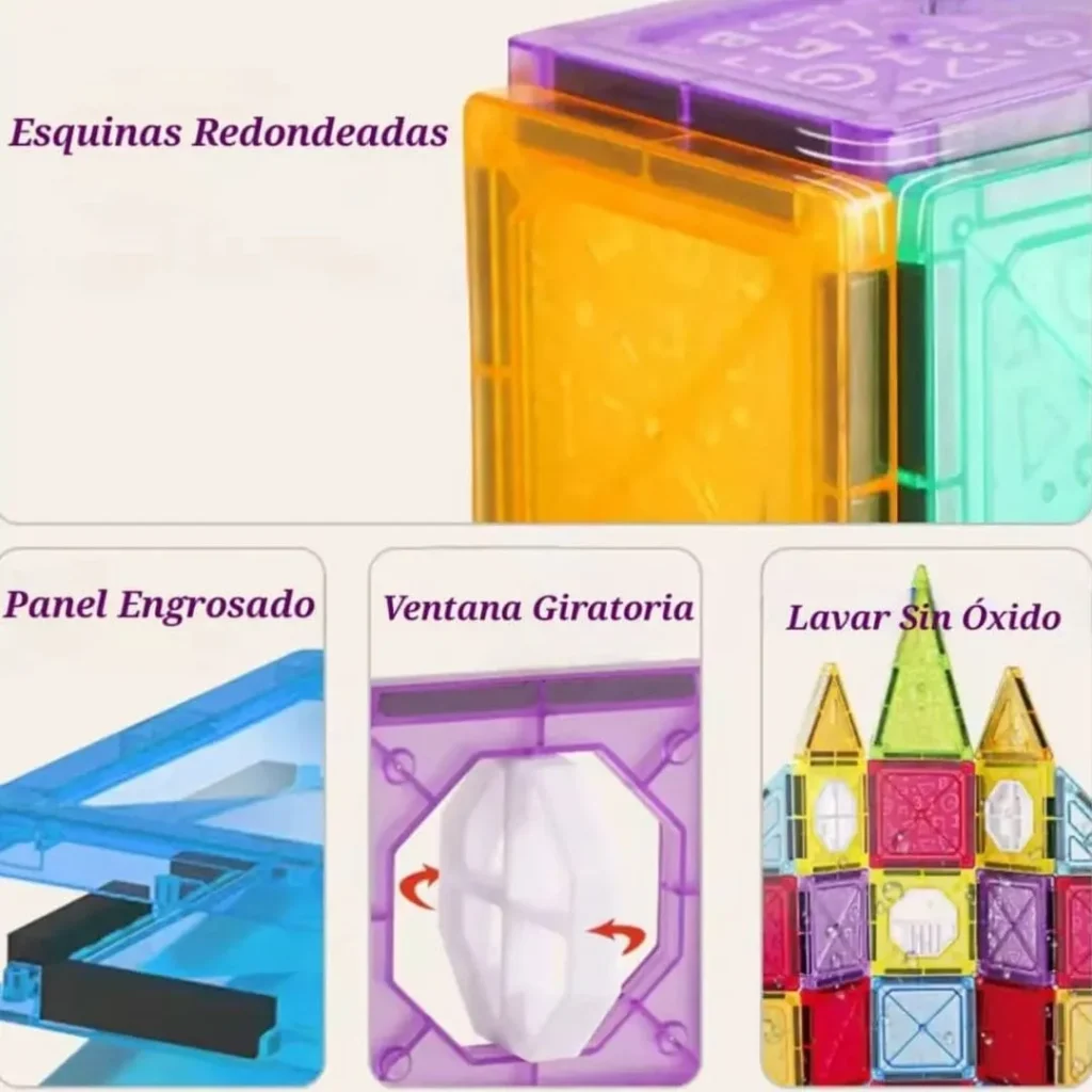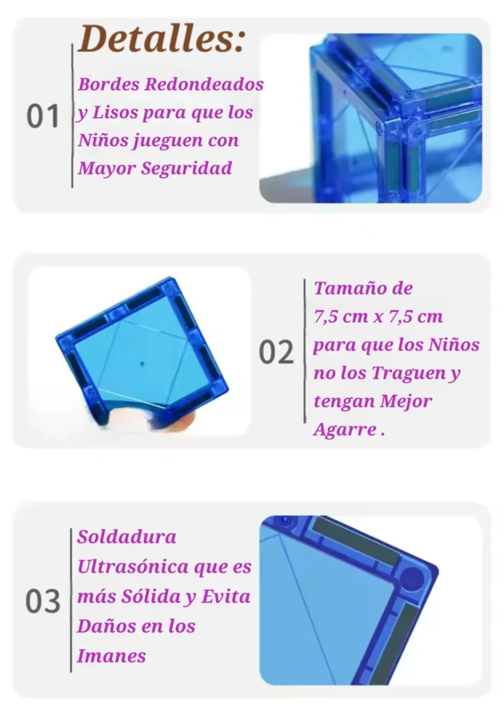 Los Imanes Fuertes 🔗 y las Piezas Grandes 🧩 aseguran que los niños jueguen de forma segura, sin riesgos de piezas pequeñas ⚠️.